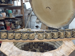 The artisans at Grey Fox anticipate their yearly order and pay the same careful attention to detail they always do. Our team takes pride in hand making the finished custom mug styles for Steel Service Co.