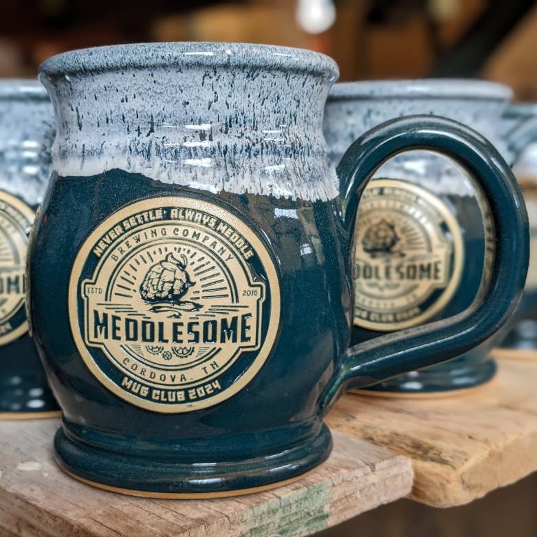 We think this 20 ounce beer mug looks great with darker and earthy color toned glazes, like the brown with sand pictured here. It also has a broad, rounded body that supports a larger medallion to really show off your logo.