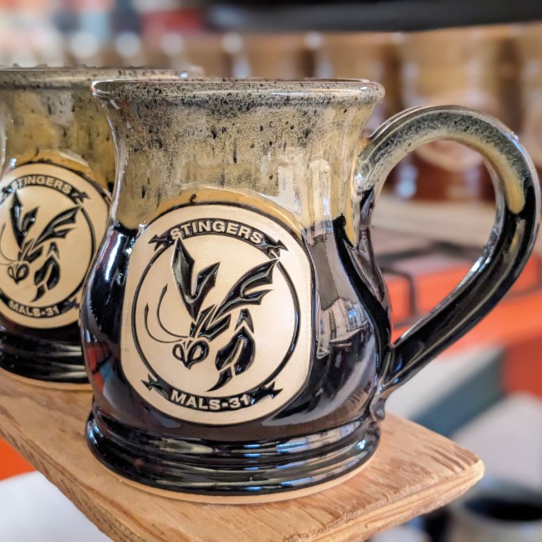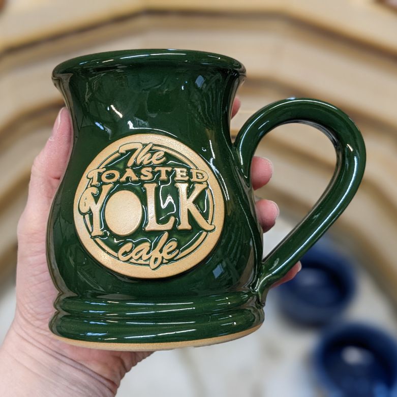 The 12 or 16 ounce Potbelly coffee mug is a classic handmade mug style and one of our most popular custom stoneware coffee mugs. For more of a graceful effect, our Potbelly mug is a bit slimmer and taller than most mugs. Our coffee shop and bakery customers love its soft lines and rich glaze colors that complete the warm and inviting atmosphere of their local shops.