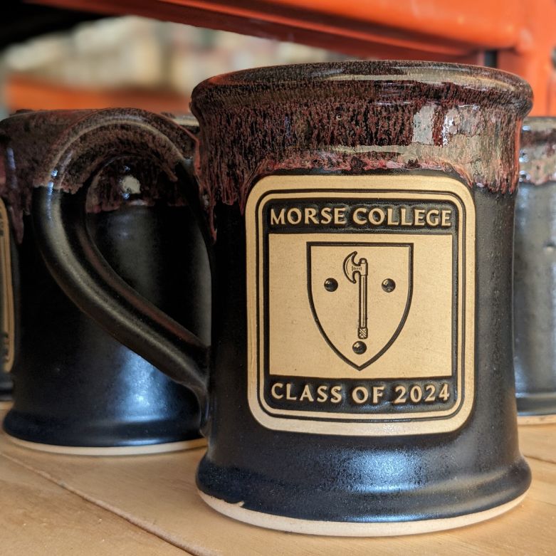 Our Slimline mug looks beautiful in a simple, rich one color glaze, glossy or satin but we love the depth of color that the molten overglaze gives on this mug, but you can choose your own favorite glaze color for your custom coffee mug.