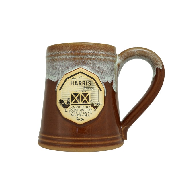 While it’s traditional in styling, this mug has staying power, remaining one of our most popular style choices. Plus, because it’s fashioned out of natural clay stoneware, this pottery mug really does keep your drinks warmer, longer. Put it to the test!